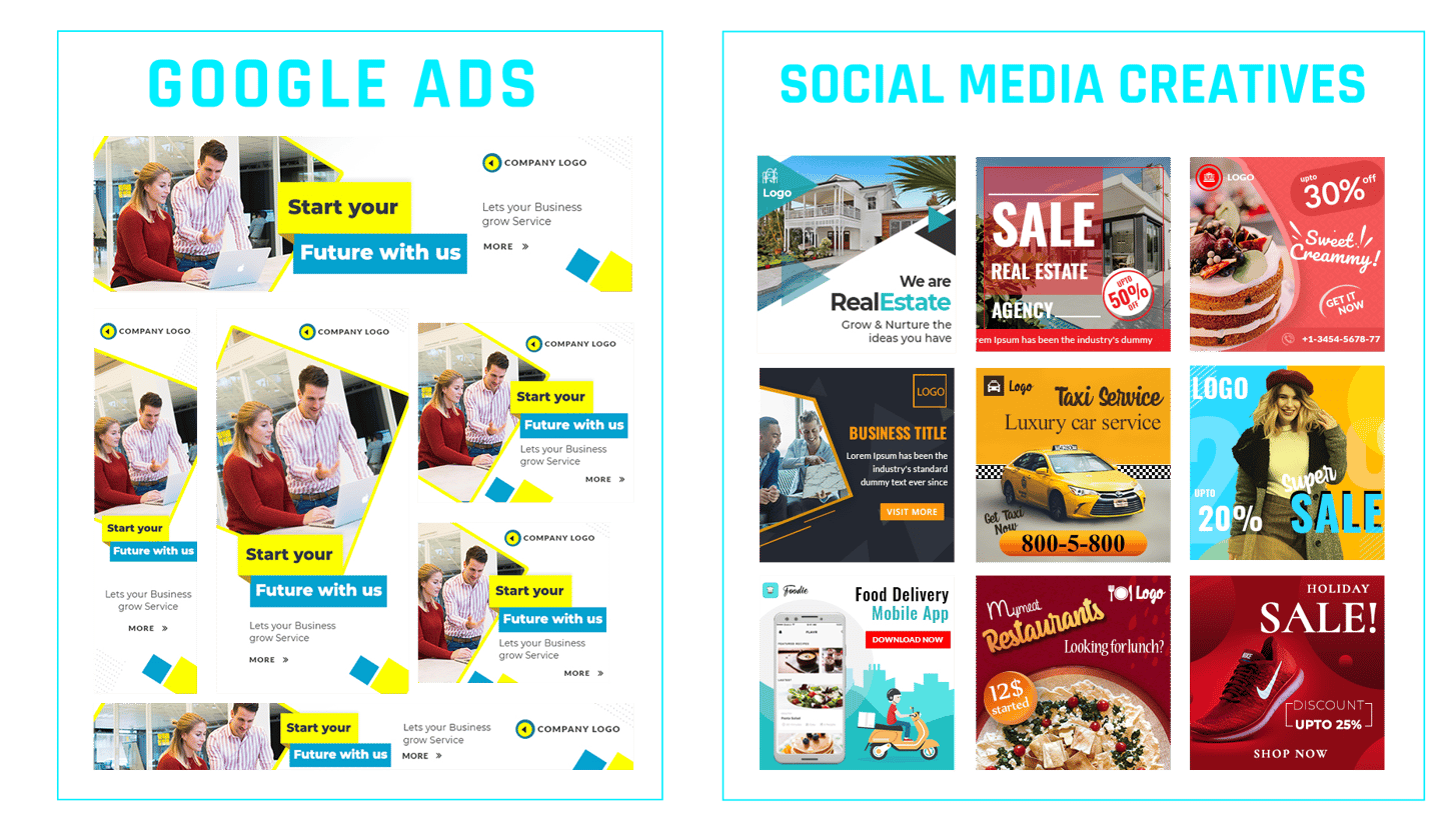 We craft compelling ad creatives that grab attention and drive results. From striking visuals to persuasive copy, our designs are tailored for maximum impact across platforms like Facebook, Instagram, and Google. Whether static or motion-based, every ad is built to engage, convert, and grow your brand.